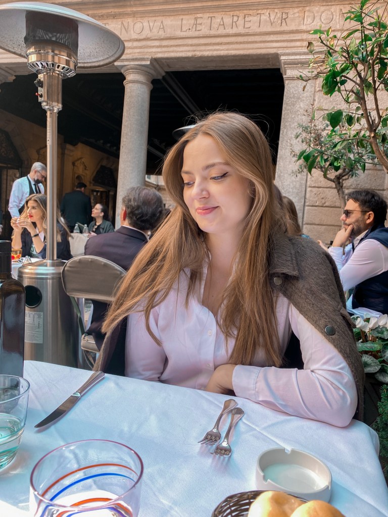 For a lunch or dinner spot, I highly recommend Il Salumaio di Montenapoleone. The restaurant is located right next to the Via Monte Napoleone shopping street and serves delicious classic Italian cuisine. We booked a table on their gorgeous inner courtyard and enjoyed delicious meal of pasta.